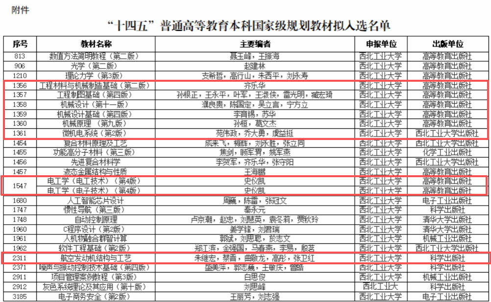 近日,教育部发布了国家 “十四五” 普通高等教育本科国家级规划教材的入选结果,全校 26 本教材成功入选,其中机电学院9 本教材斩获佳绩,创下学院在国家级规划教材评选中的历史新高。这一成果是对学院多年来教材建设与育人质量的充分认可。