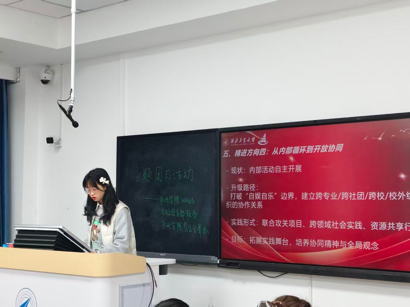 活动尾声,何颖同学进行总结发言。她指出,当前学生会正处于转型升级的关键阶段,应直面发展过程中存在的问题与挑战,并从价值导向、角色定位、视野格局、工作模式四个核心维度,明确了学生会未来的升级路径与发展目标,为学生会的高质量发展指明了方向。